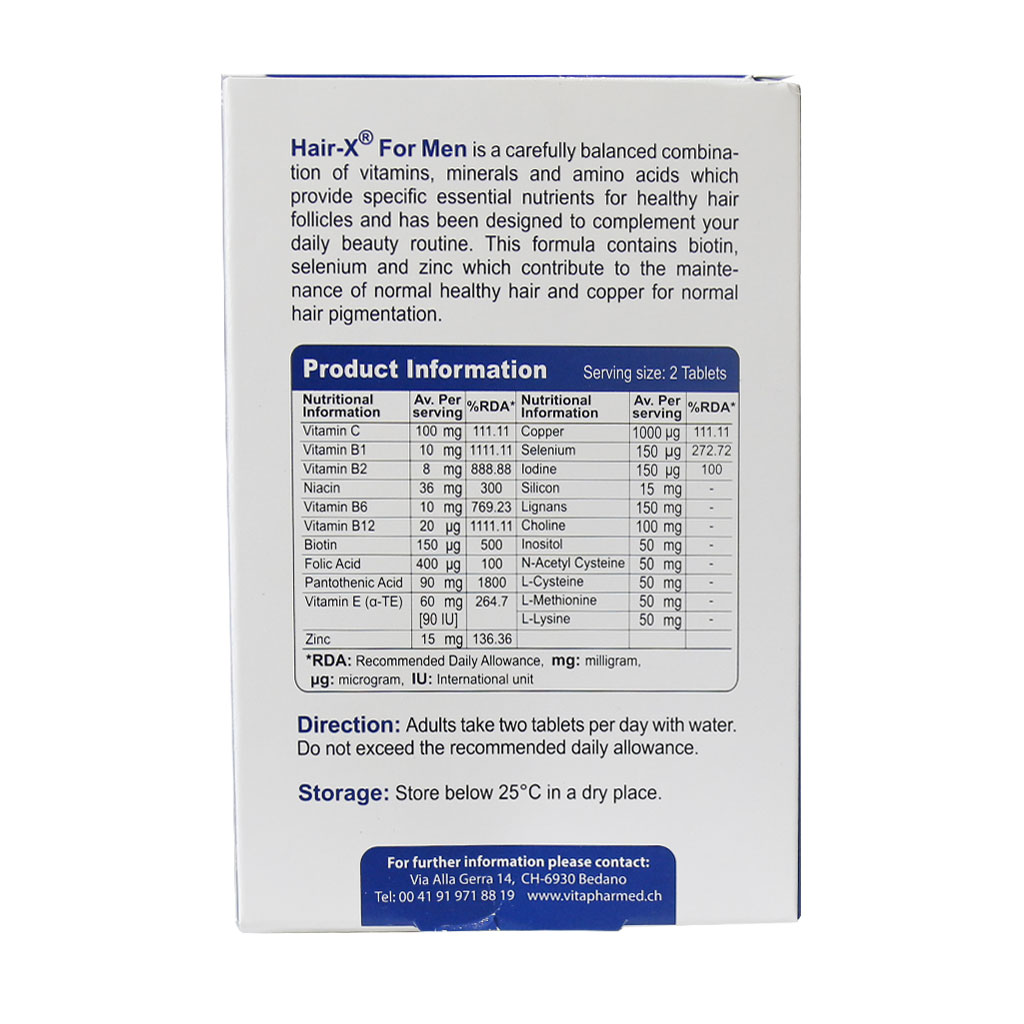 قرص هیر ایکس آقایان ویواتیون یک مولتی ویتامین منحصر به فرد که حاوی املاح ضروری جهت تقویت مو، جلوگیری از ریزش مو در آقایان، حفظ رنگ مو در آقایان و سلامت موها استفاده میشود. استفاده روزانه از این محصول میتواند سلامت موهای شما را تضمین کند. بر اساس نتایج مطالعات، مس از طریق کمک به تولید ملانین در حفظ رنگدانه مو موثر است. بنابراین، اگر فولیکولهای مو به اندازه کافی مس دریافت نکنند، سنتز ملانین متوقف میشود و مو رنگدانه خود را از دست میدهد. از همین رو قرص هیر ایکس آقایان با داشتن 1000 میکروگرم مس در هر سروینگ، در حفظ رنگ طبیعی مو و پیشگیری از سفید شدن زود هنگام مو موثر است.