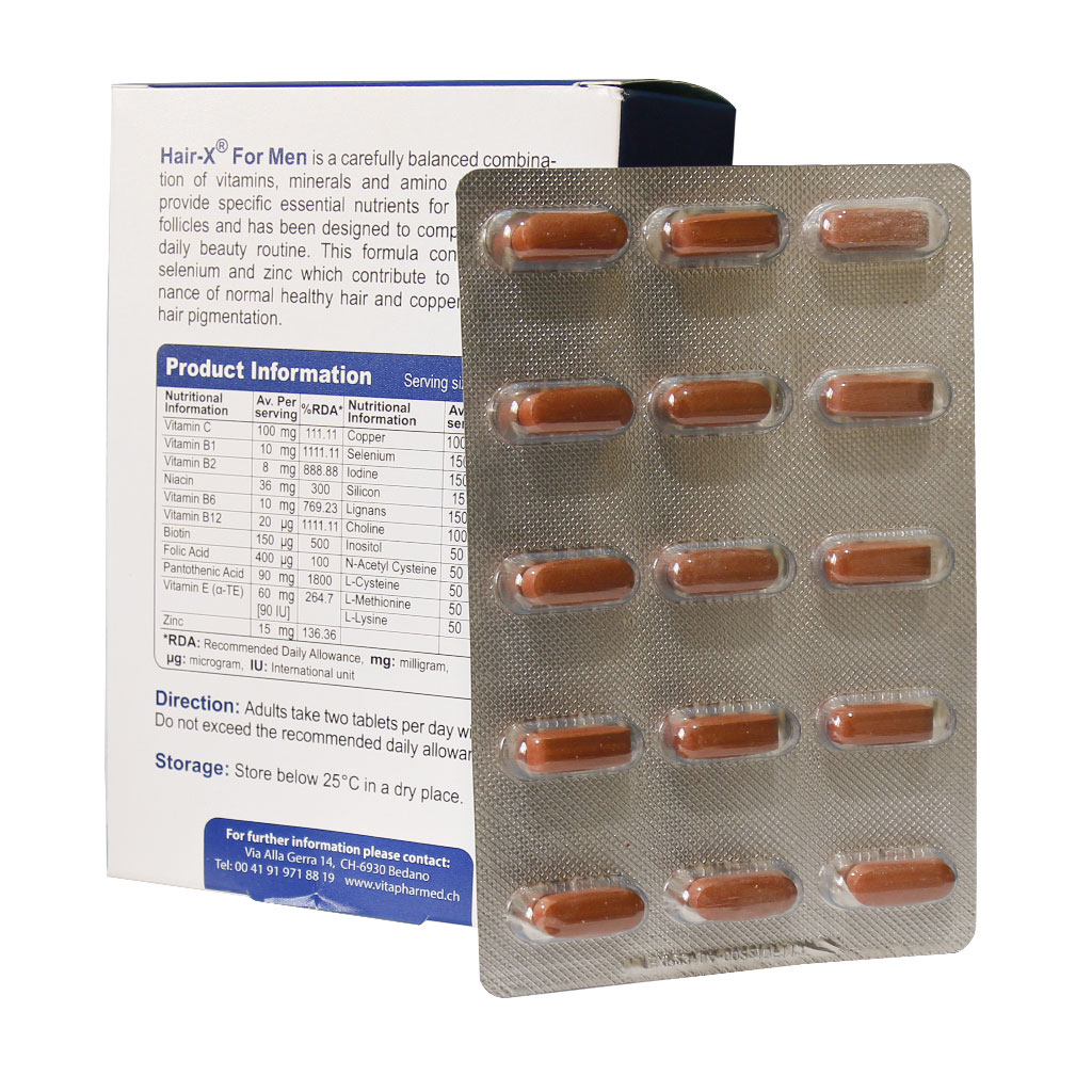 هیر ایکس Hair X آقایان یک محصول مراقبت از مو است که به طور خاص برای آقایان طراحی شده است. این نوع محصولات معمولا به منظور بهبود وضعیت مو، تقویت رشد مو و پیشگیری یا کاهش ریزش مو تولید میشوند. قرص Hair X شامل ترکیبی از ویتامینها، مواد معدنی، آمینواسیدها و گیاهان دارویی است که به طور خاص برای تقویت رشد مو، کاهش ریزش مو و حفظ سلامت کلی موها مورد استفاده قرار میگیرد. مصرف منظم قرص هیر ایکس آقایان به بهبود سلامت مو و جلوگیری از ریزش مشکلات مربوط به ریزش مو کمک میکند، اما نتایج معمولا پس از چند ماه مصرف مداوم قابل مشاهده خواهد بود.