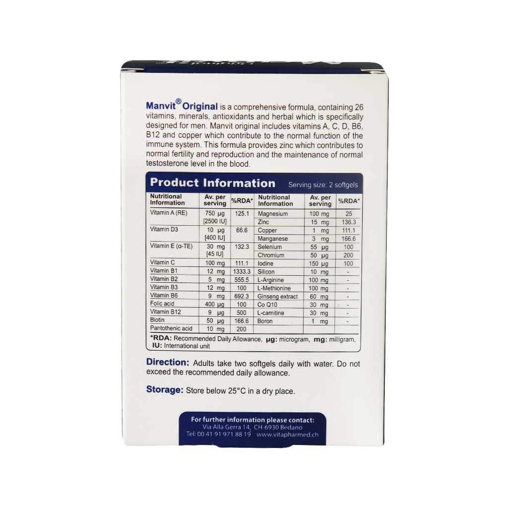 - حاوی 26 ویتامین و مواد معدنی مورد نیاز آقایان