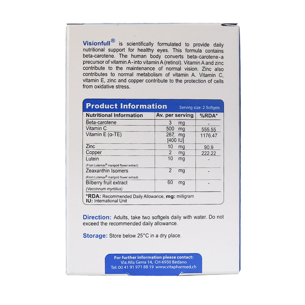چشم یکی از ارگان‌های ضروری بدن است که می‌توانید با آن زیبایی‌های جهان را ببینید. از این رو با غذاهای مفید برای سلامت چشم و مکمل‌های مناسب می‌توانید آن را تقویت کنید. کپسول نرم ژلاتینی ویژن فول ویواتیون یک مکمل غذایی ایده آل جهت کمک به حفظ سلامت چشم‌ها و بینایی با خاصیت آنتی اکسیدان است. این محصول حاوی بتاکاروتن، ویتامین‌ها، مواد معدنی، لوتئین و عصاره بیلبری بوده که همگی برای کمک به سلامت چشم و بینایی موثر است.