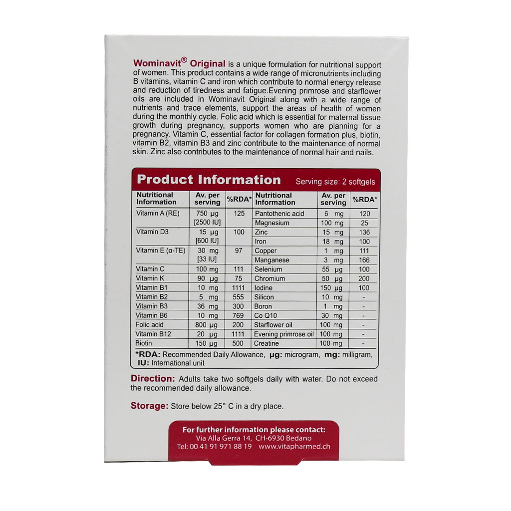 سافت ژل ومیناویت اوریجینال ویواتیون مخصوص خانمها، دارای ترکیب بی نظیری از ویتامینها، مواد معدنی و روغنهای گیاهی بوده که به سلامتی و شادابی بانوان کمک میکند.