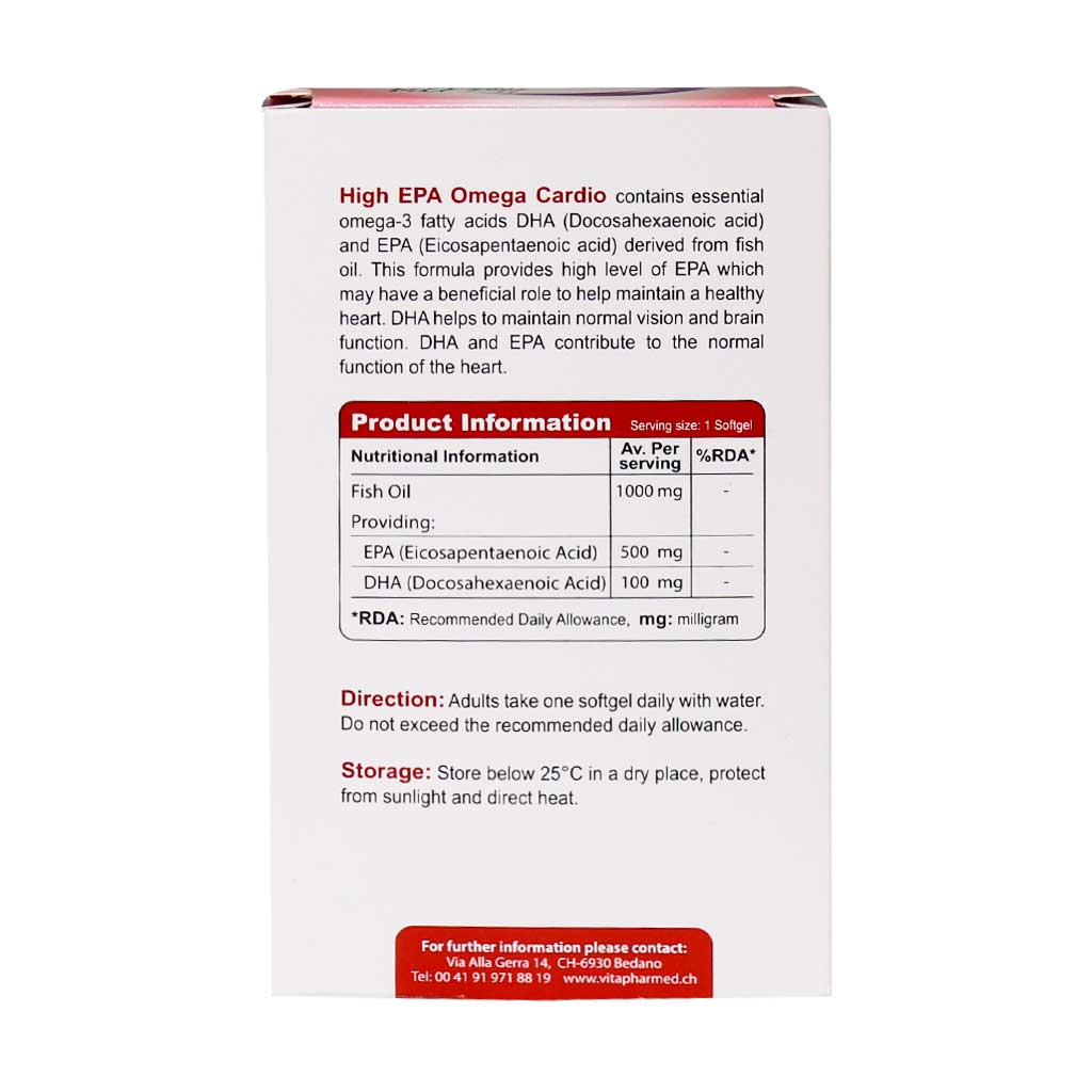 کپسول نرم ژلاتینی امگا 3 High EPA ویواتیون حاوی امگا 3 دکوزا هگزانوئیک اسید و ایکوزا پنتانوئیک اسید مشتق از روغن ماهی است. قرص امگا 3 این برند حاوی مقادیر بالایی از EPA بوده که اثرات سودمندی جهت عملکرد صحیح سیستم قلب دارد. کپسول امگا 3 EPA باعث افزایش سطح کلسترول خوب و کاهش کلسترول بد در بدن میشود. چرا که افزایش سطح کلسترول بد (LDL) شانس ابتلا به گرفتگی عروق، فشار خون و سکته قلبی را افزایش میدهد. به علاوه EPA از خود خاصیت ضد التهابی نیز نشان میدهد. خاصیت ضد التهابی در بسیاری از سیستمهای بدن اثر بسیار مناسبی دارد. به عنوان مثال کاهش فاکتورهای التهابی در عروق میتواند مانع از تشکیل پلاک (در اثر رسوب چربی) و ضخیم شدن دیواره رگ و به طبع گرفتگی عروق و سکته قلبی شود.