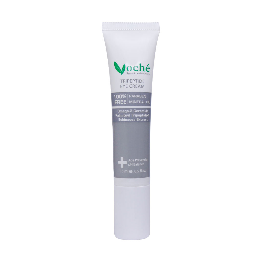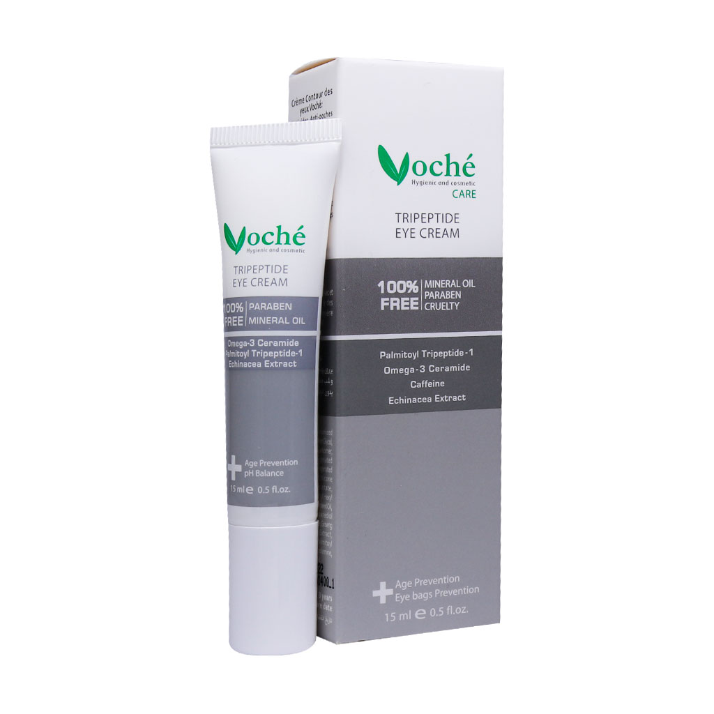 اولین نشانههای پیری و افزایش سن در پوست دور چشم دیده میشود. تمام حرکات صورت از جمله اخم، خنده و … در ایجاد چین و چروک دور چشم نقش دارند. میتوان با کنترل این حرکات از افتادن چین و چروک در این نواحی جلوگیری کرد. استفاده از کرم دور چشم از جمله اقداماتی است که از همان سن جوانی سبب میشود تا پیری پوست به حداقل رسیده شود. کرم دور چشم وچه مدل Tripeptide یک محصول فوق العاده حاوی کافئین، روغن آووکادو، سرامید و امگا 3 است.