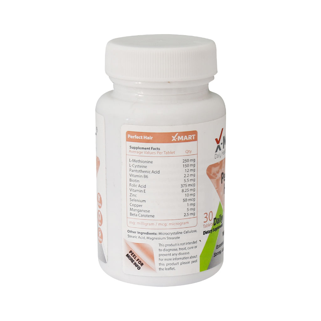 قرص پرفکت هیر ایکس مارت حاوی تمامی ویتامین‌ها و مواد معدنی مورد نیاز مو بوده و به رشد، استحکام و سلامت مو کمک موثری می‌کند.