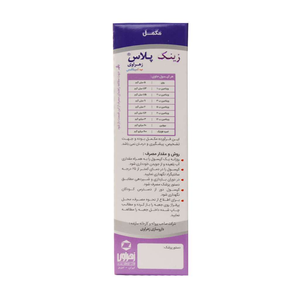 ویژگی های کپسول زینک پلاس ب کمپلکس زهراوی
