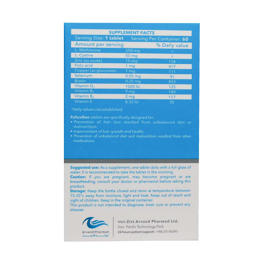 قابل ذکر است که هر بسته مکمل فولیکوژن اروند فارمد حاوی 60 عدد قرص است. فولیکوژن به صورت قرص پیوسته رهش است و در مدت زمانی طولانیتر در معده آزاد میشود؛ بنابراین موجب کاهش دفعات مصرف شده و از نظر اقتصادی به صرفه است.