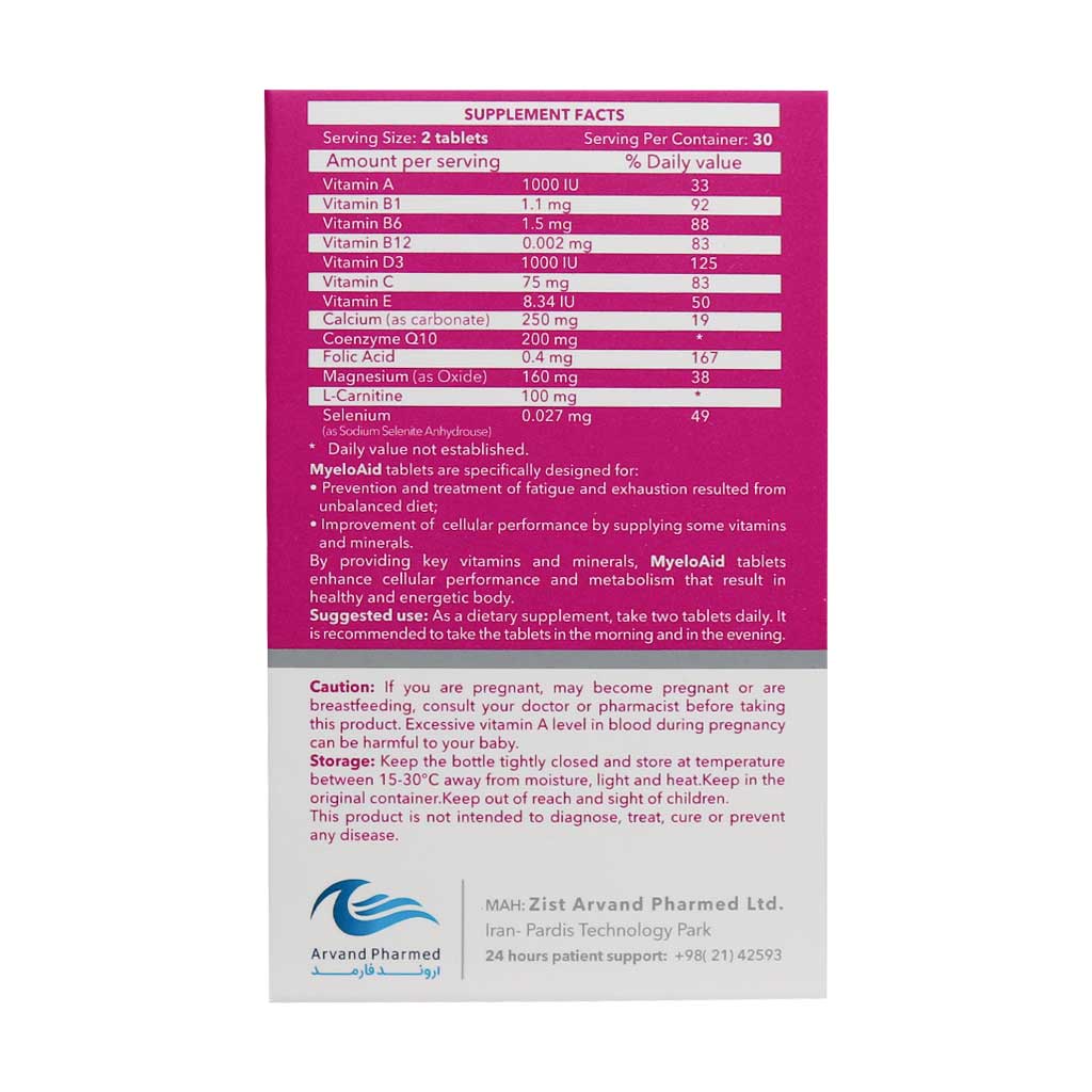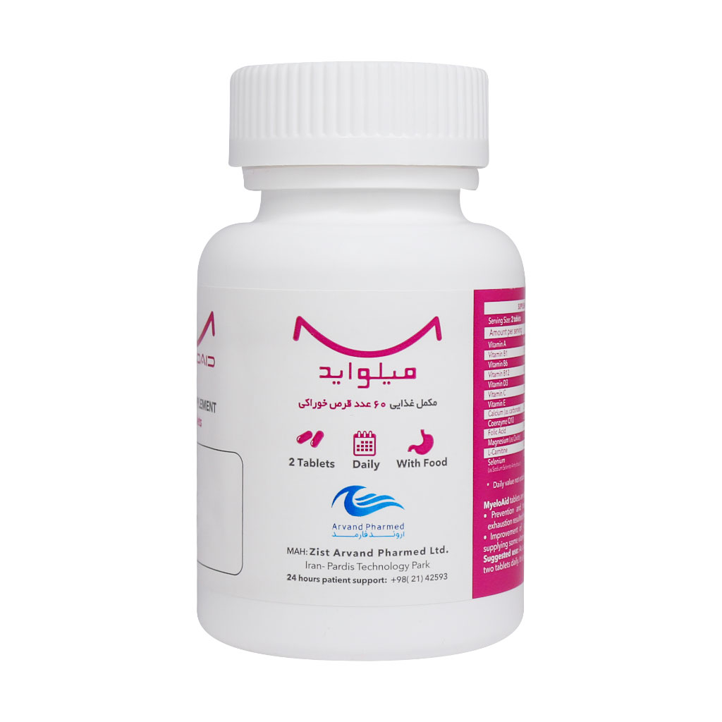 قرص میلو اید اروند فارمد با طراحی تخصصی ویتامینهای مختلف، مواد معدنی و ریز مغذیها است. این قرص جهت پیشگیری و اصلاح ضعف و خستگی ناشی از رژیم غذایی نامناسب و بهبود عملکرد سلولی است.